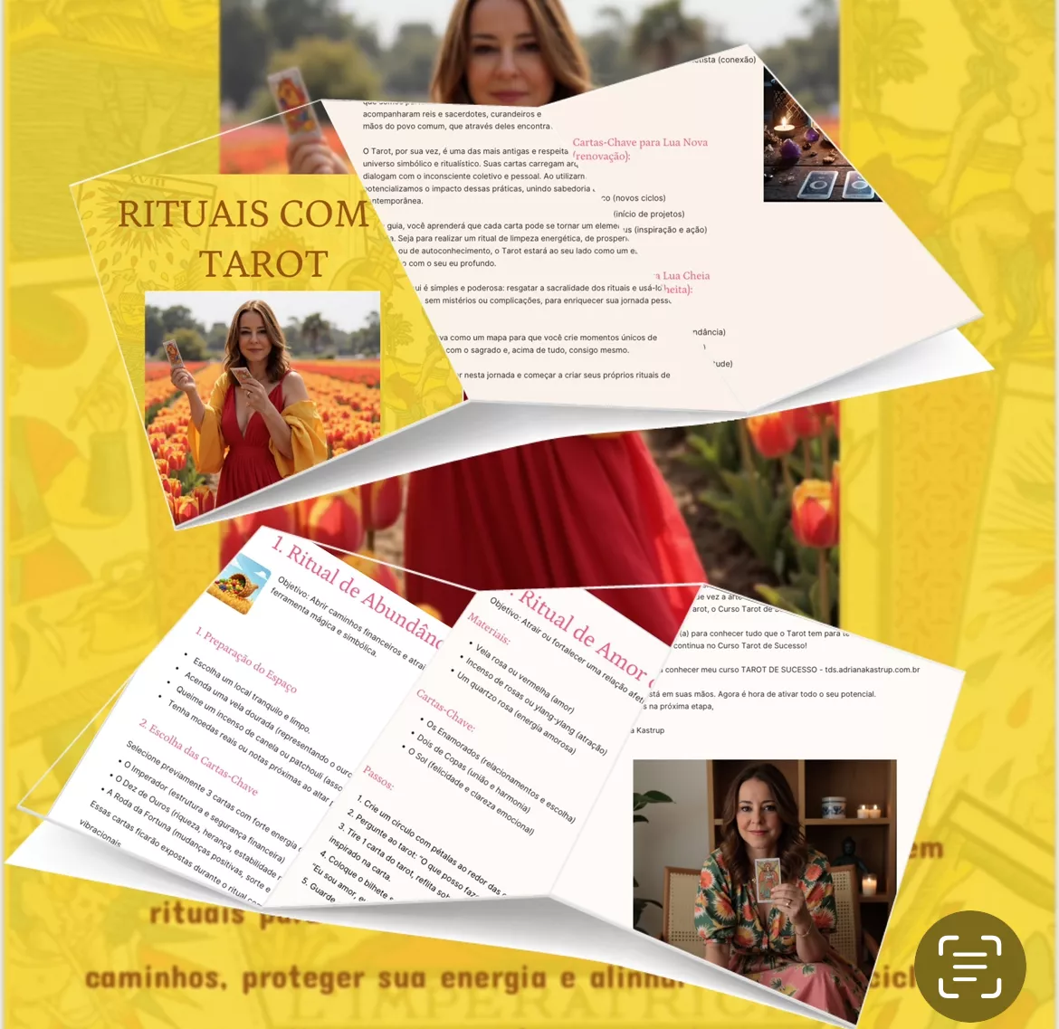 Neste guia prático, você aprenderá rituais acessíveis e profundos, códigos sagrados que unem a sabedoria ancestral do Tarot com a força mágica dos rituais. Aqui, cada carta se torna um elemento de poder para te ajudar a desbloquear caminhos, atrair prosperidade, proteger sua energia e alinhar-se com os ciclos da natureza.